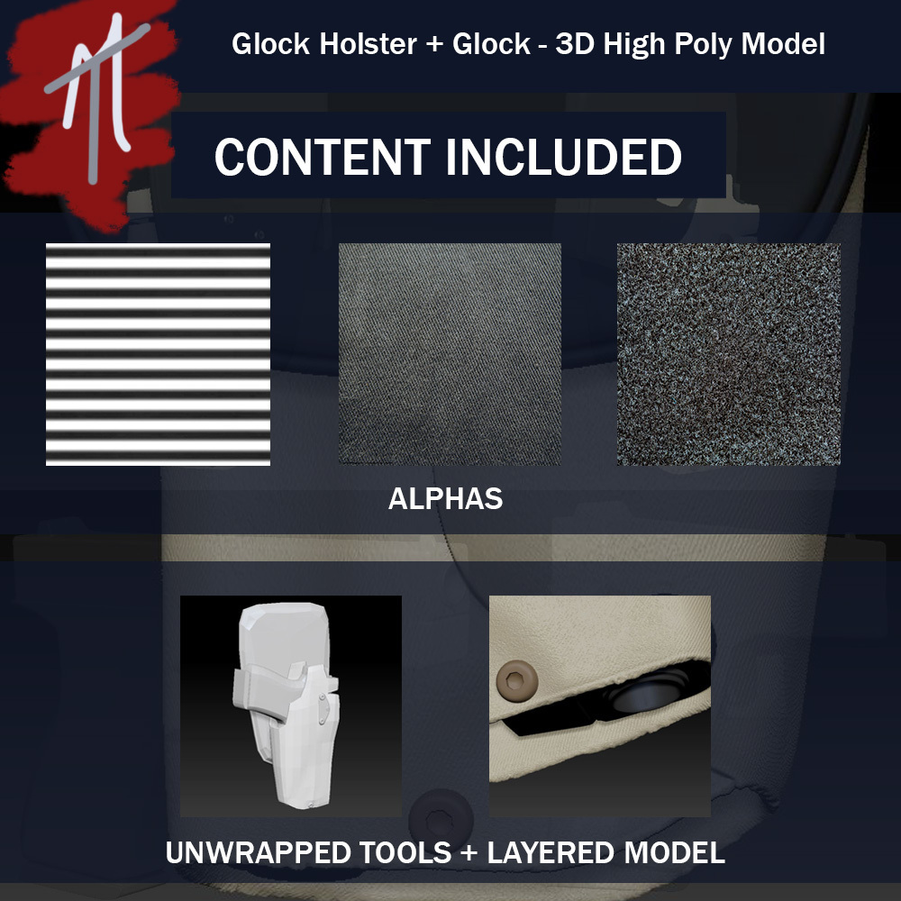 A customizable High Poly Glock Holster and Compact Glock base model modeled in zbrush. The file comes with all the custom alphas and models I used to create the model as well as the obj files of the separate pieces of the model.