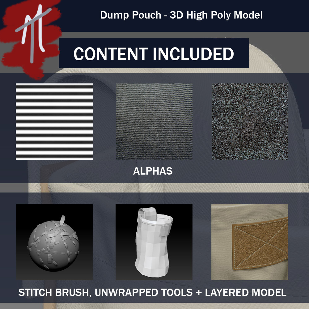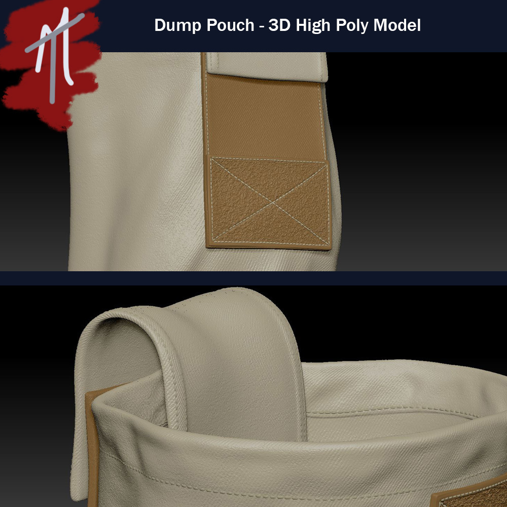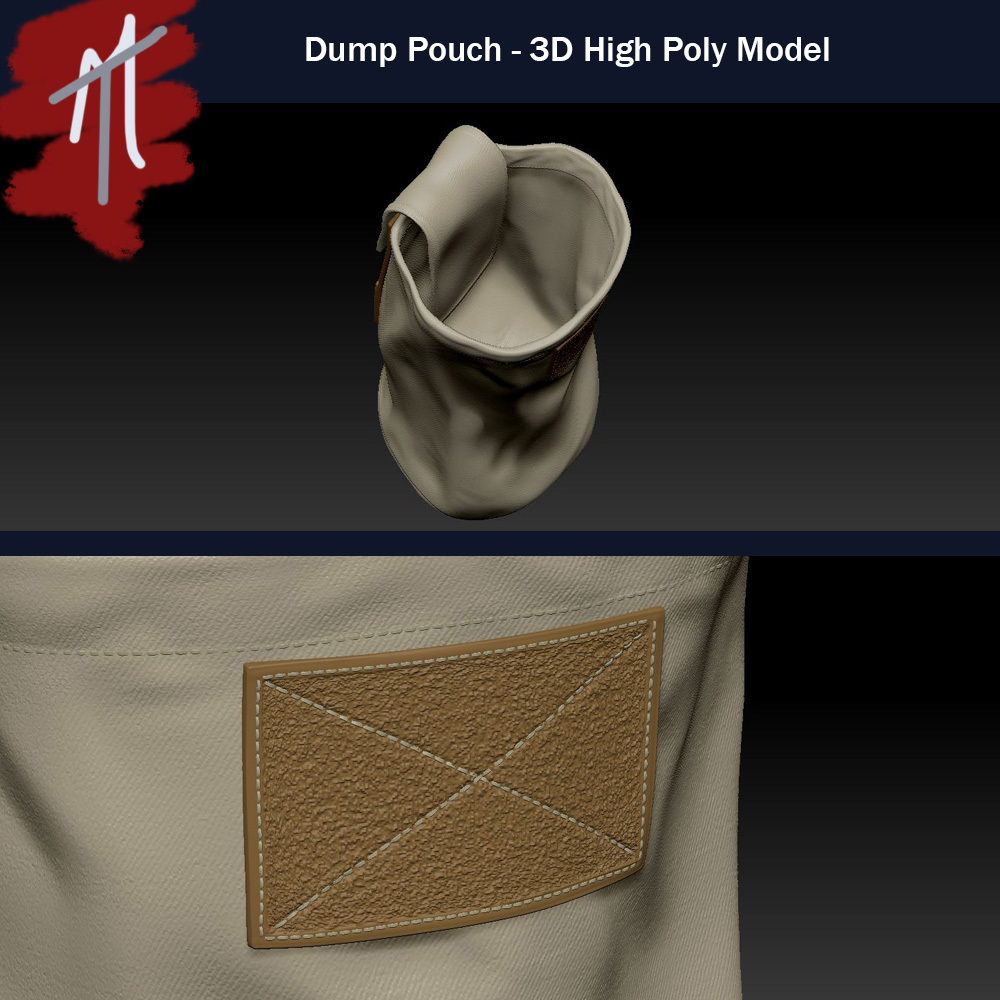 A customizable High Poly Dump Pouch modeled in zbrush. The file comes with all the custom alphas and brushes I used to create the model as well as the obj files of the separate pieces of the model.